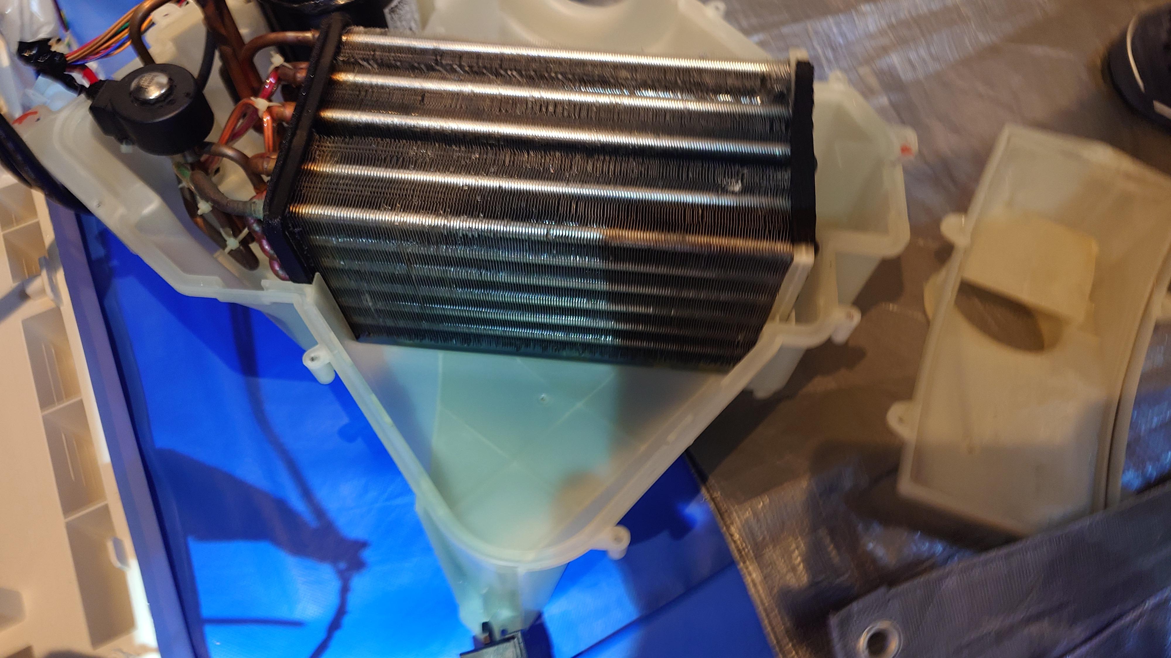 3. ヒートポンプ内部の腐食と汚れヒートポンプの熱交換器は、除湿のために冷たくなったり、温風を作るために熱くなったりを繰り返します。結露による固着: 除湿の際に発生する結露によってホコリが濡れて固着し、泥のような汚れとなってフィンの奥深くに溜まります。錆(腐食): 長期間の使用により、水分と汚れが原因で内部の銅管が錆び、冷媒ガスが漏れ出す故障(ガス漏れ)につながることもあります。これらはクリーナーでは防ぐことも取り除くこともできません。
