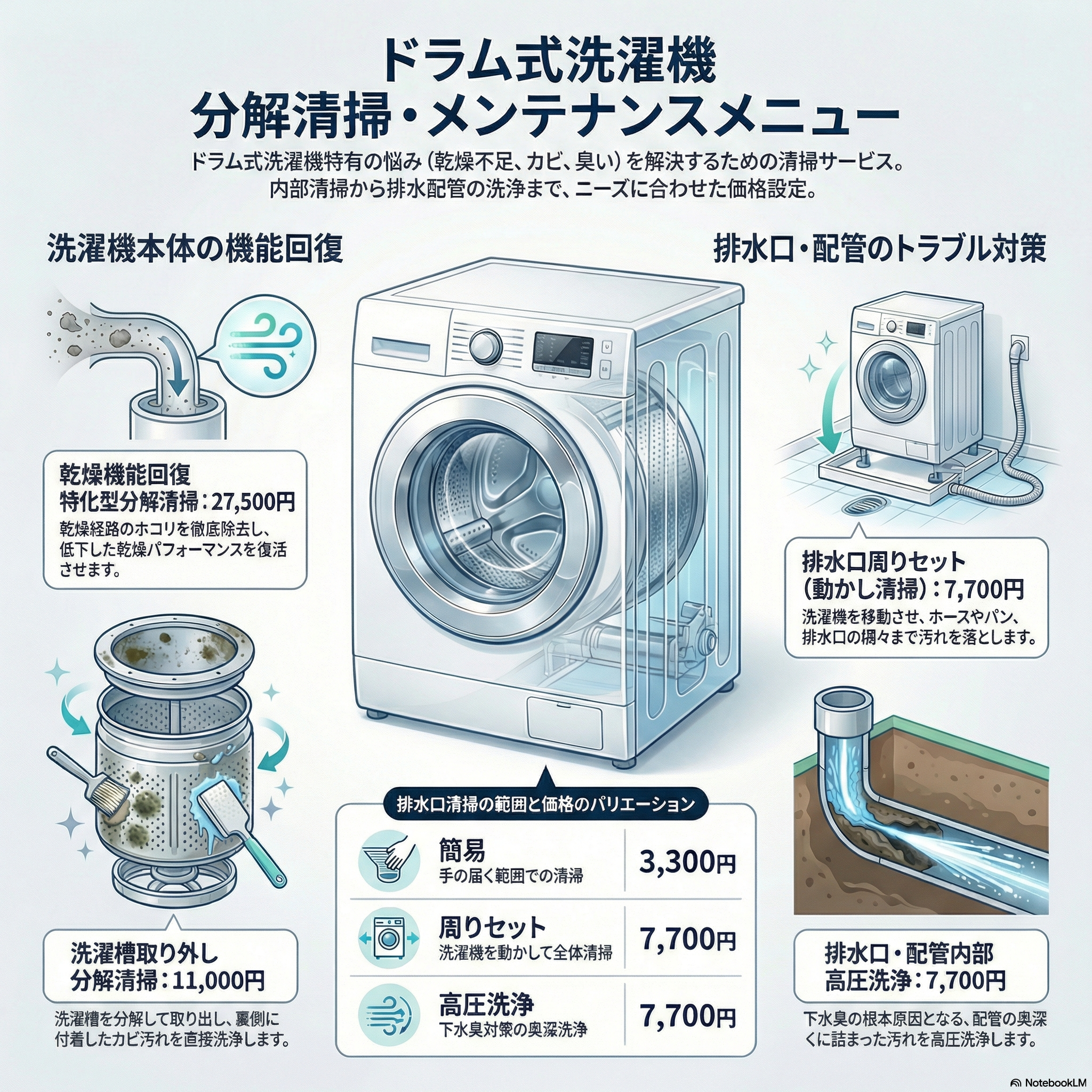 乾燥機能回復特化型ドラム式洗濯機分解清掃 27,500円
